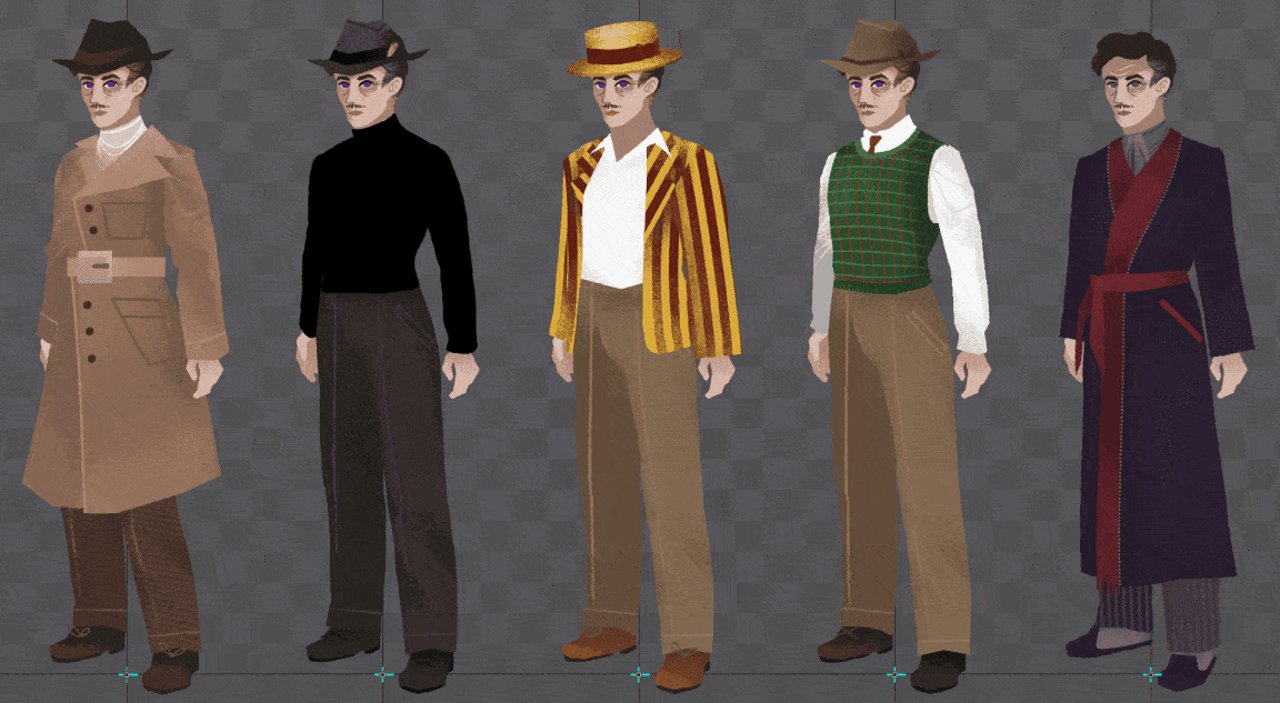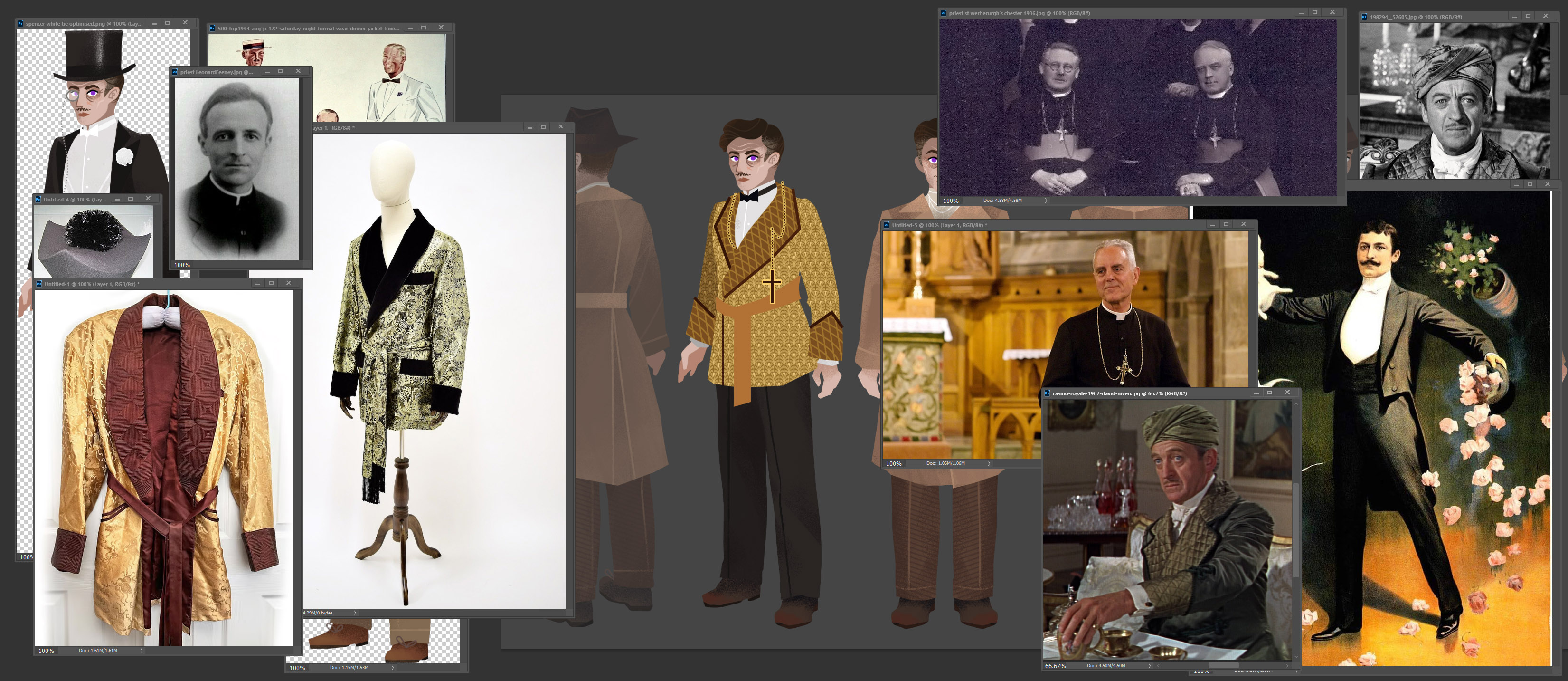 Just for fun, here’s what my screen looks like when drawing Spencer’s clothes. Glad I have an ultrawide monitor! And an excuse to look at David Niven a lot.