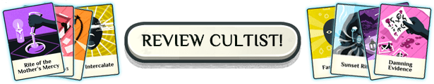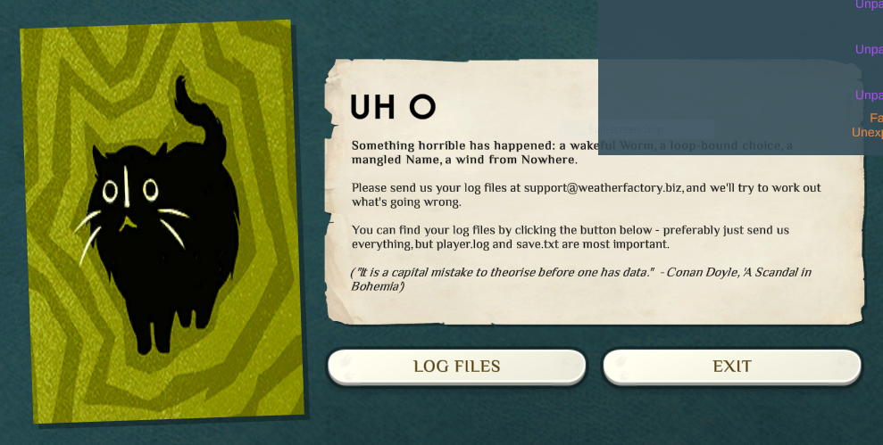Finally, I’d like to apologise for anyone who’s been waiting on support help from us for Cultist Simulator. We’ve been behind on the support queue since AK’s been ill, and I, sadly, am as gifted a programmer as a vole from the eighth century. We’ve also been unable to push out smaller JSON-specific changes because all the refactoring work AK’s done to Cultist‘s code base to make BOOK OF HOURS work better has to be finished before we can build new versions. TLDR: we’re sorry, and we should be back on support form in the next few weeks! Thank you very much for bearing with us. <3