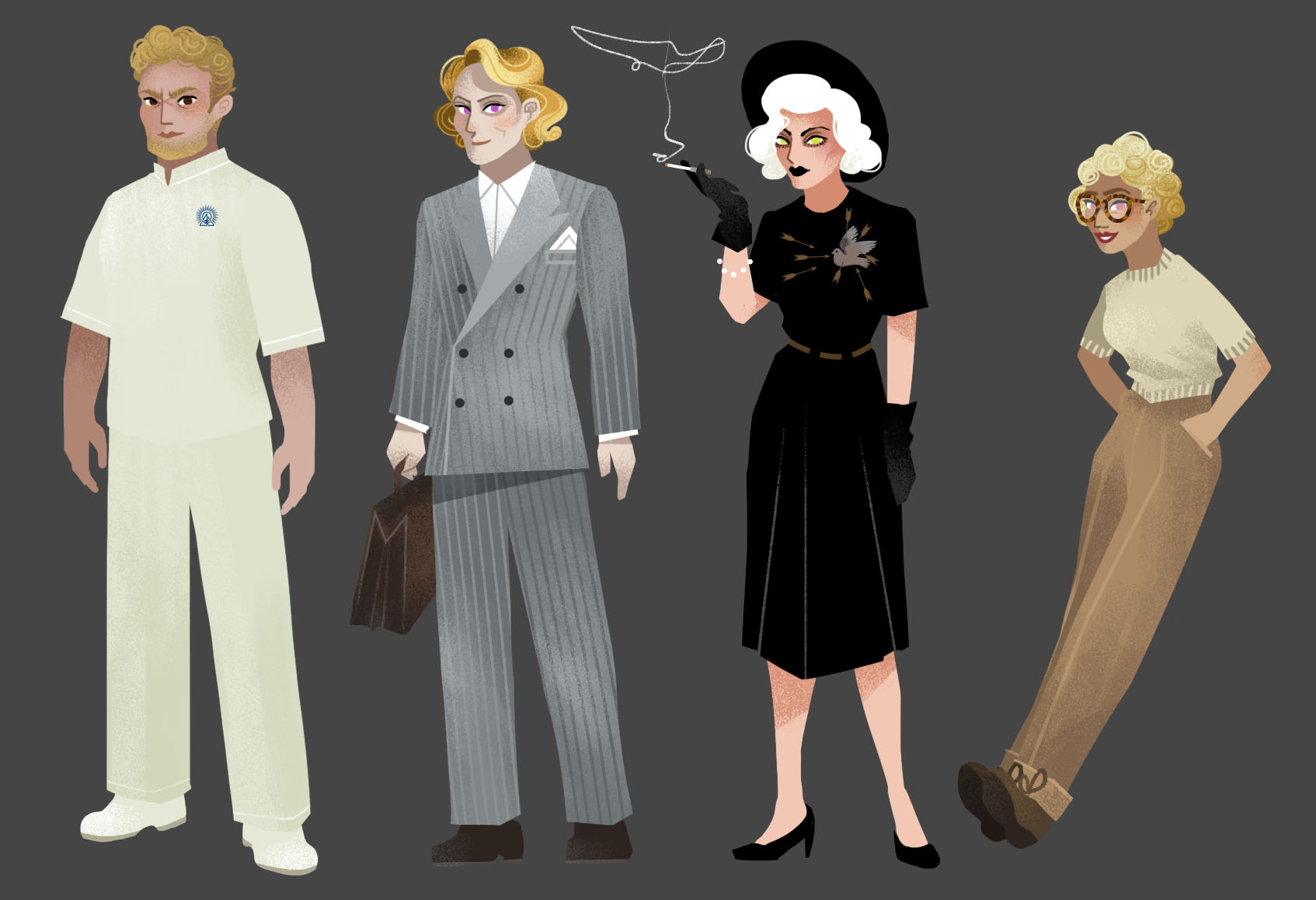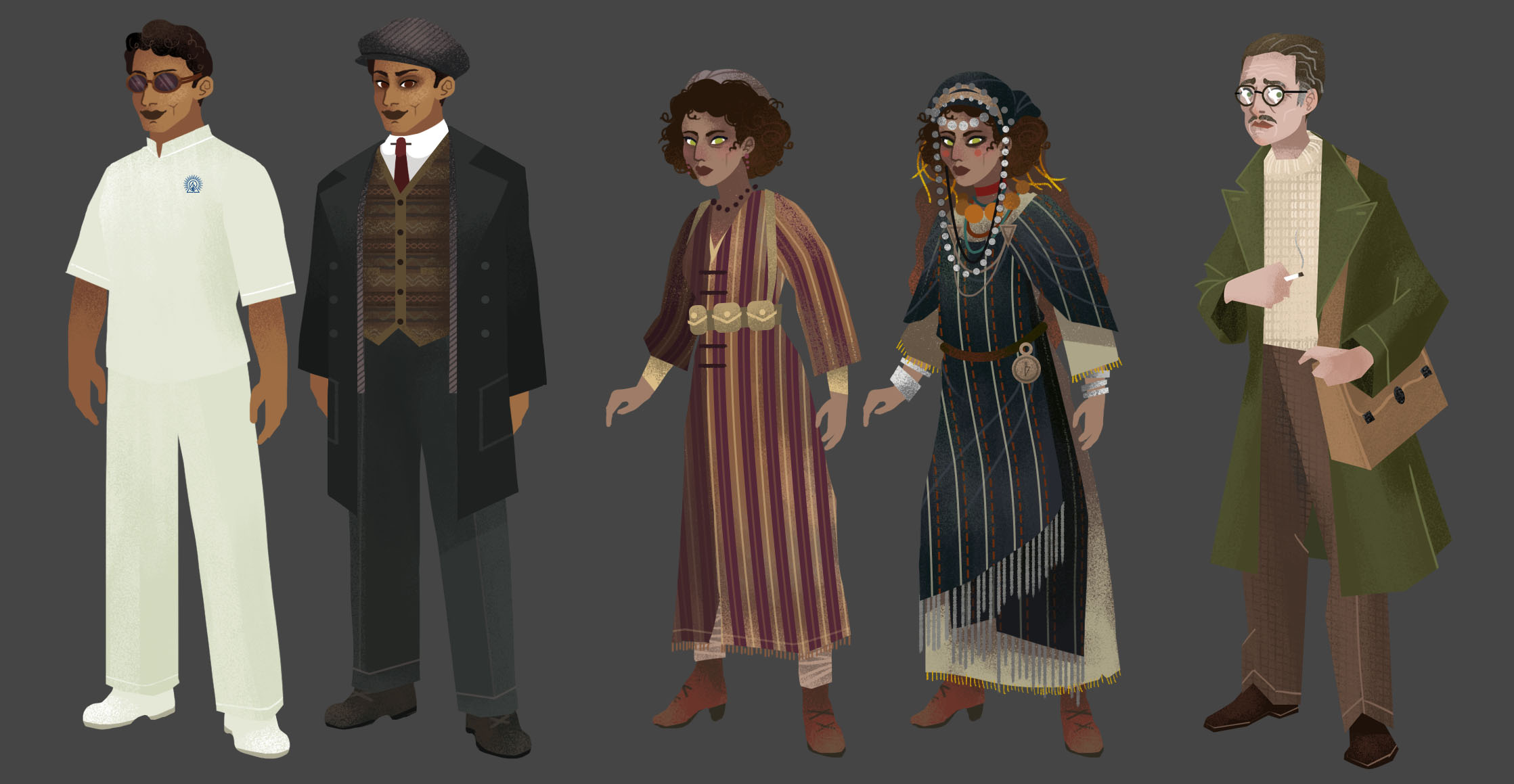Meet Mathis, Vincent’s laconic colleague at the Sanitarium with a past he’s not thrilled for you to find out about. Then there’s Maître Argant, representative of a certain power transmarine, with unclear intentions and exquisite tailoring. The next you saw in Dream form in a Reddit post a while back: here is Nina, Witch of Lagasse, in all her glory. And finally, taking her ease, is half-Canadian Bessy Bloom, jazz singer turned cook (to make ends meet) who never seems able to sit still…